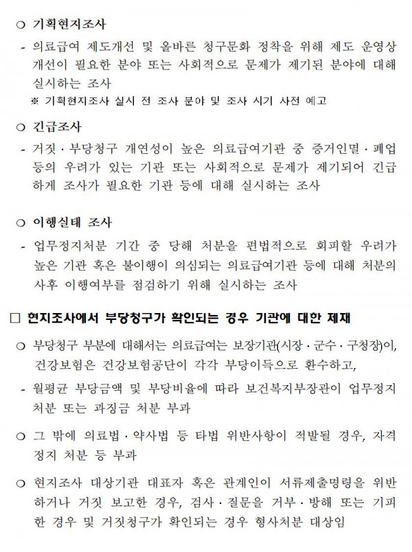 보건복지부에서 급여 제도개선 및 올바른 청구문화 정착을 위해 실시하는 2021년 의료급여기관 기획현지조사 계획을 알려 왔습니다.