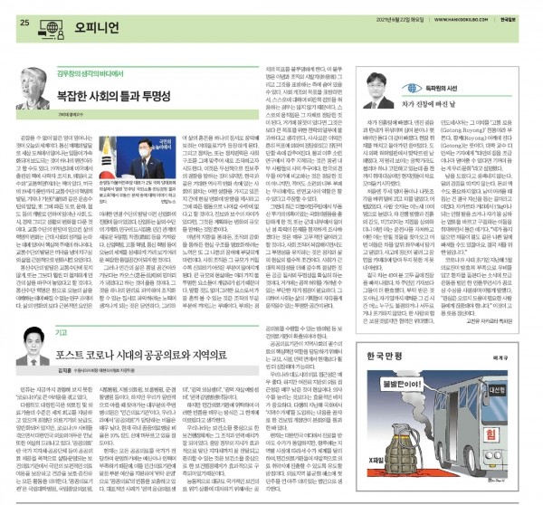 포스트 코로나 시대의 공공의료와 지역의료(김지훈 수석부회장, 한국일보 기고)