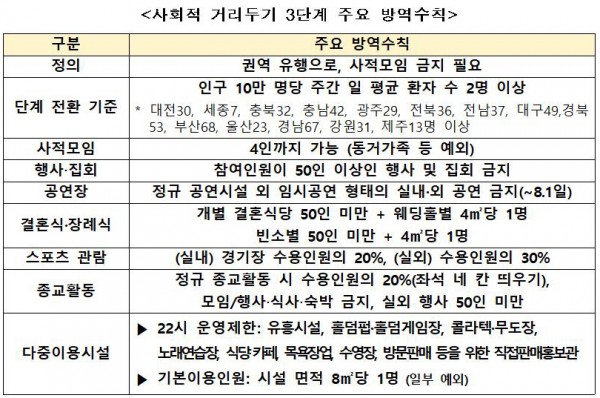 [중대본]비수도권 사회적 거리두기 3단계(7.27~8.8)