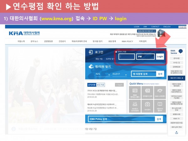 1) 대한의사협회 (www.kma.org) 접속 --> ID PW --> login