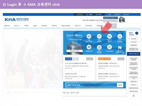 3) KMA 교육센터 (http://edu.kma.org) --> Memebership login 다시 한 번 (의협 ID PW 와 동일)