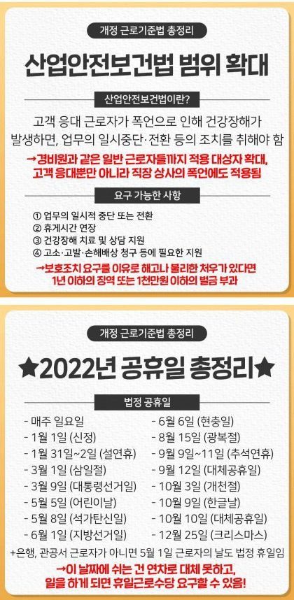 [노무]새롭게 시행되는 개정된 근로기준법 총정리 대피연 메일보내기 이름으로 검색 0 10,618 2021.12.20 12:17 첨부파일 - 첨부파일: 근로기준법11.jpg (471.5K) 155 - 첨부파일: 근로기준법12.jpg (415.7K) 125 - 첨부파일: 근로기준법13.jpg (326.6K) 128 짧은주소 - 짧은주소: https://laserpro.or.kr:443/bbs/?t=9fj 주소복사 × 짧은 글주소 복사 Note! 위 주소를 드래그, 복사(Ctrl+C)하여 사용하세요. 이전글다음글 목록 본문 [노무]새롭게 시행되는 개정된 근로기준법 총정리 이전글다음글 목록 댓글목록 등록된 댓글이 없습니다.