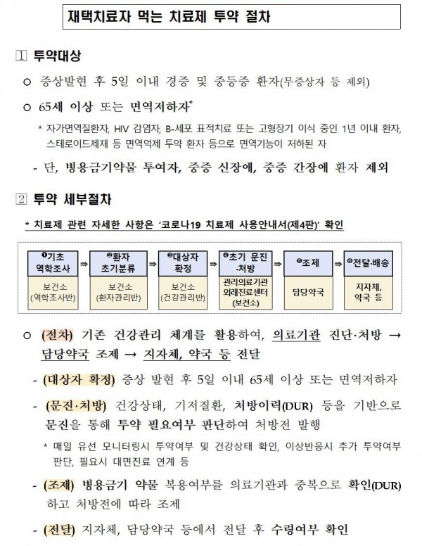 - 1.14.~1.15.까지 담당약국, 생활치료센터에 배송, 1.14.(금)부터 환자에게 투여 시작