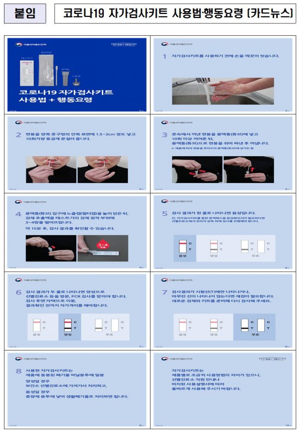 ▶붙임. 코로나19 자가검사키트 사용법·행동요령 (카드뉴스)