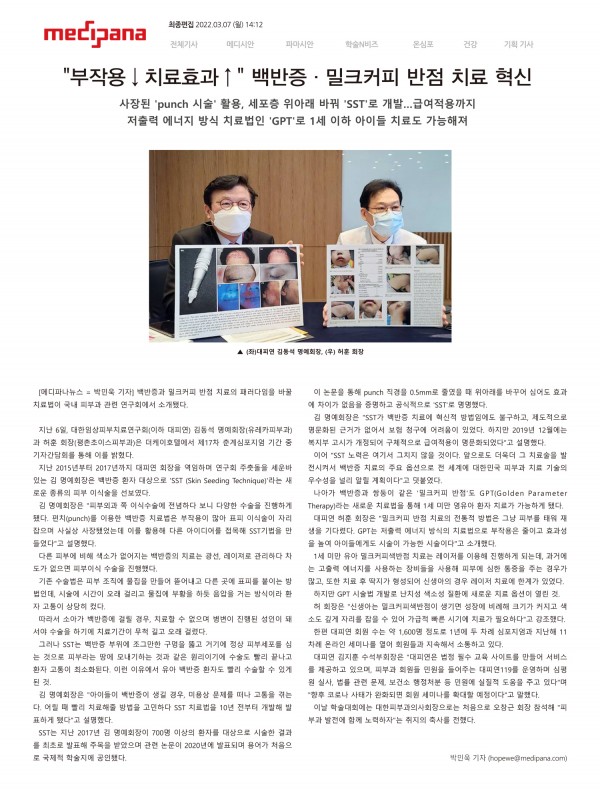 ▶[메디파나]"부작용↓치료효과↑" 백반증·밀크커피 반점 치료 혁신