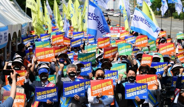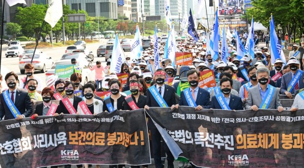 대한의사협회와 대한간호조무사협회 회원 7000여명은 5월 22일 여의도공원 일원에서 '간호법 제정 저지를 위한 전국 의사-간호조무사 공동 궐기대회'를 개최하고 "보건의료직역의 분열을 조장하는 간호단독법안을 철회하라"고 촉구했다.