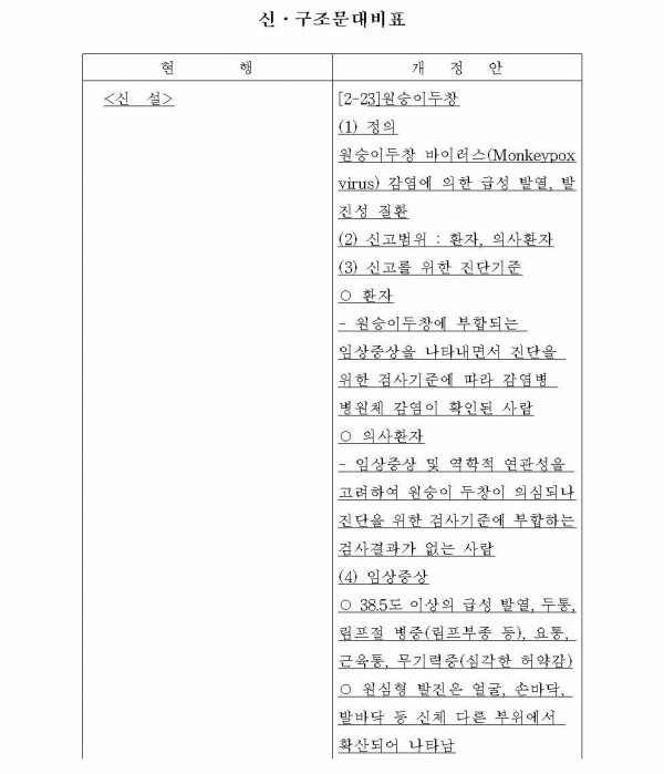 [질병청]원숭이두창(Monkeypox)을 “제2급감염병”으로 지정(입원·격리 의무 부과)