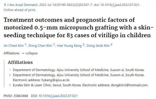 김동석 명예회장 백반증 치료 논문 ‘SST (Skin Seeding Technique)’ 제목으로 JAAD에 게재