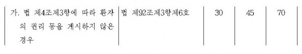 [복지부]환자의 권리를 의료기관 내부에 게시하지 않은 경우 과태료 규정(1차 30만원, 2차 45만원, 3차 70만원)