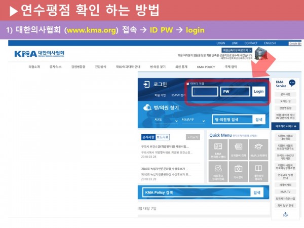1) 대한의사협회 (www.kma.org) 접속 --> ID PW --> login