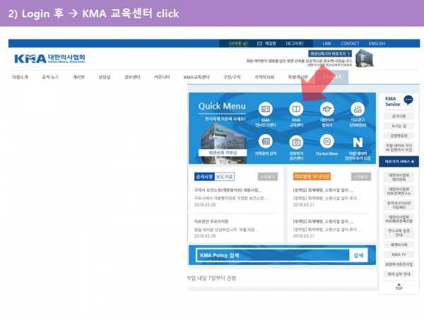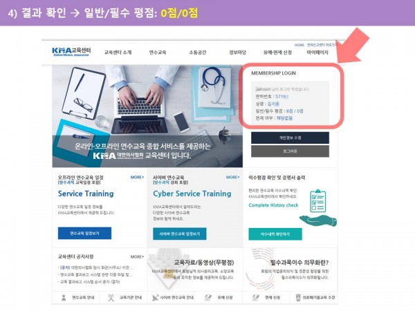 3) KMA 교육센터 (http://edu.kma.org) --> Memebership login 다시 한 번 (의협 ID PW 와 동일)