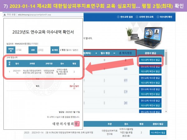 7) 2023-01-14 [연수]제42회 대한임상피부치료연구회 교육 심포지엄… 평점 2점(최대)