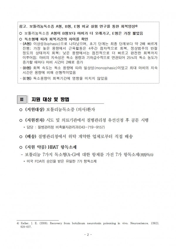 [질병청]보툴리눔 독소증 감시 강화 및 항독소 치료 안내BTX보톡스 대피연 메일보내기 이름으로 검색 0 11,307 2023.02.24 10:49 첨부파일 - 첨부파일: [붙임] 보툴리눔독소증 항독소 치료 안내.hwpx (109.6K) 204 - 첨부파일: 공문.jpg (135.6K) 169 짧은주소 - 짧은주소: https://laserpro.or.kr:443/bbs/?t=bwY 주소복사 × 짧은 글주소 복사 Note! 위 주소를 드래그, 복사(Ctrl+C)하여 사용하세요. 이전글다음글 목록 본문 [질병청]보툴리눔 독소증 감시 강화 및 항독소 치료 안내 이전글다음글 목록 댓글목록 등록된 댓글이 없습니다.