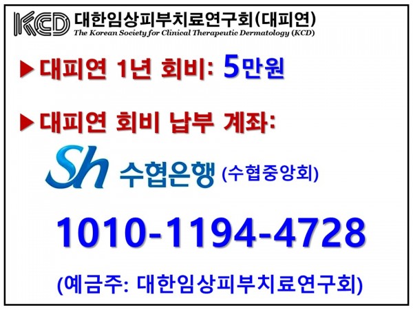 - 회비 납부 계좌: 수협은행(수협중앙회) 1010-1194-4728 (예금주: 대한임상피부치료연구회)