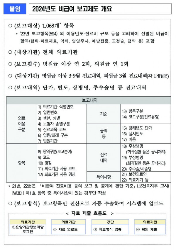 [건보공단]2024년부터 비급여 보고의무, 의원급 의료기관으로 확대(4월부터 2개월 이내 제출)