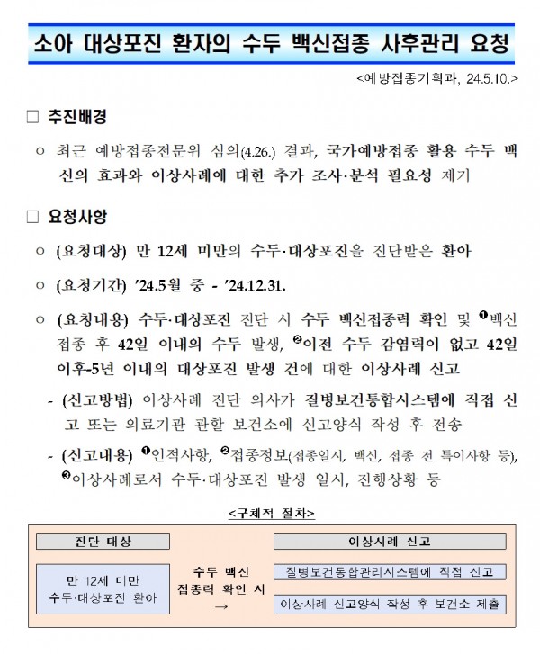 - 질병관리청, 예방접종관리과-503 (2024. 5. 10.)