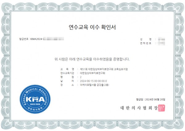대한임상피부치료연구회(대피연)은 의협 공식 연수교육기관입니다.