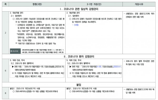 1.코로나바이러스감염증 -19 의료기관 감염예방관리(제3-1판) 개정전후대비표