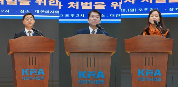 이날 행사는 규탄대회 형식으로 진행되었으며, 의협 대표자와 국회의원 안철수, 이주영 의원 등이 참석하였습니다.