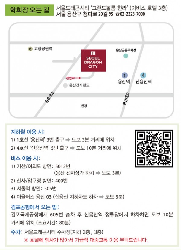 [학회장소]서울드래곤시티 ‘그랜드볼룸 한라홀(이비스 호텔 3층)’: 위치·주차·대중교통·KTX용산역·Travel guide