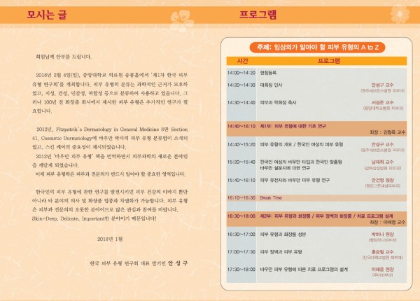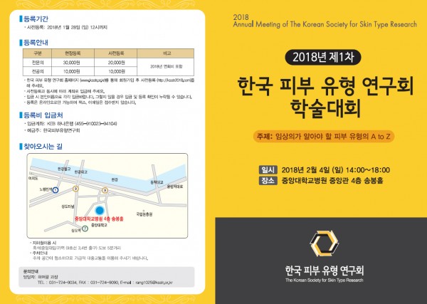 2018년 2월 4일(일), 중앙대학교 의료원 송봉홀에서 ‘제1차 한국 피부 유형 연구회’를 개최합니다.