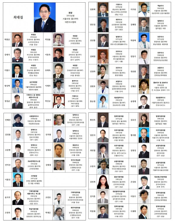 최 당선인은 "의권쟁취투쟁위원회를 출범한 제31대 김재정 집행부와 의료계 집단휴진을 주도한 제37대 노환규 집행부가 강력한 투쟁성을 갖춘 집행부였다"며 "노환규 집행부에서 집단휴진을 이끌다 기소돼 3년째 재판을 받고 있는 방상혁 상근부회장을 비롯해 전의총, 의혁투 등에서 투쟁성이 강한 인물을 대거 영입했다. 문재인케어를 저지하기 위해 강력한 대정부 투쟁을 전개할 수 있는 분들"이라고 설명했다.