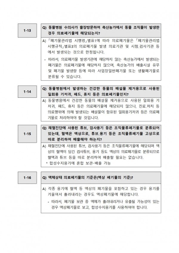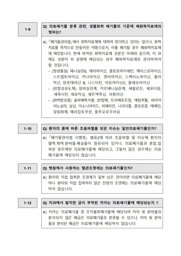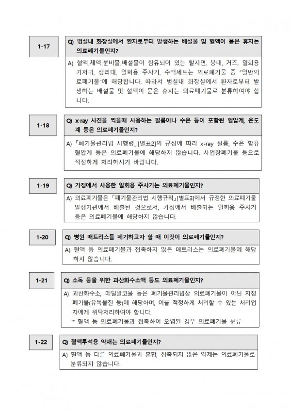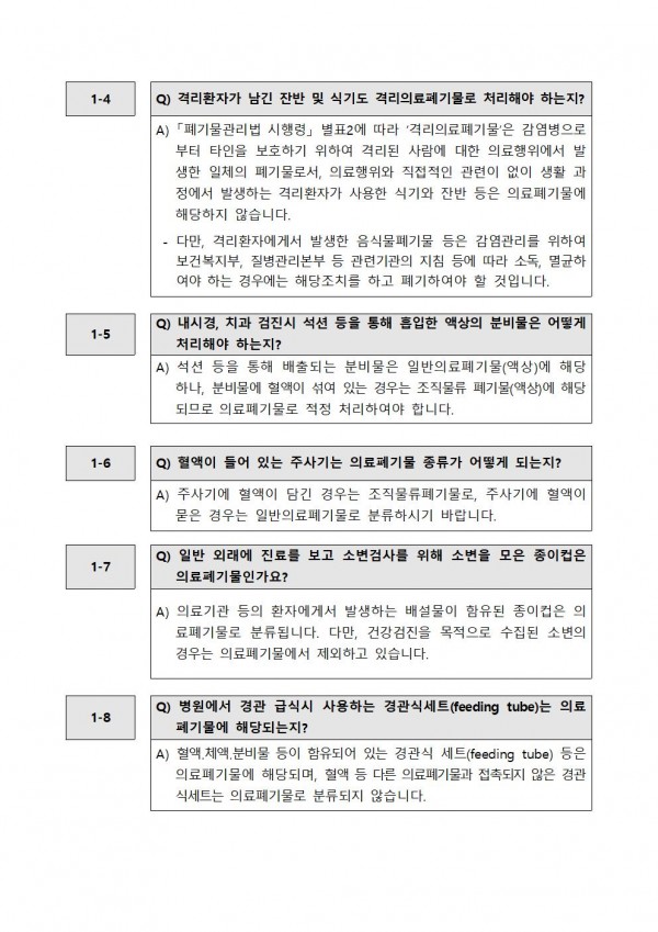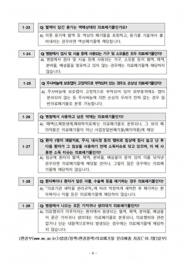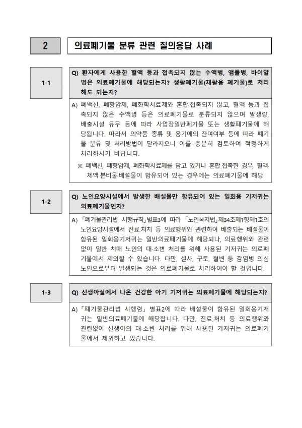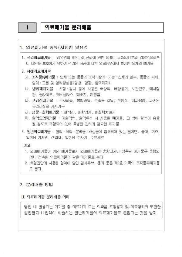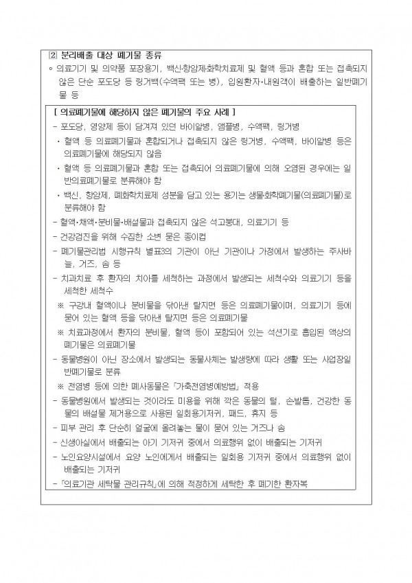 ▷관련 내용: 환경부(www.me.go.kr)>법령/정책>환경정책>의료폐기물 분리배출 지침(`18.7월)일부